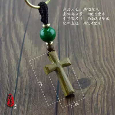 Mai Quan handmade original green sandalwood cross Keychain Car pendant jewelry Christian gift hanging