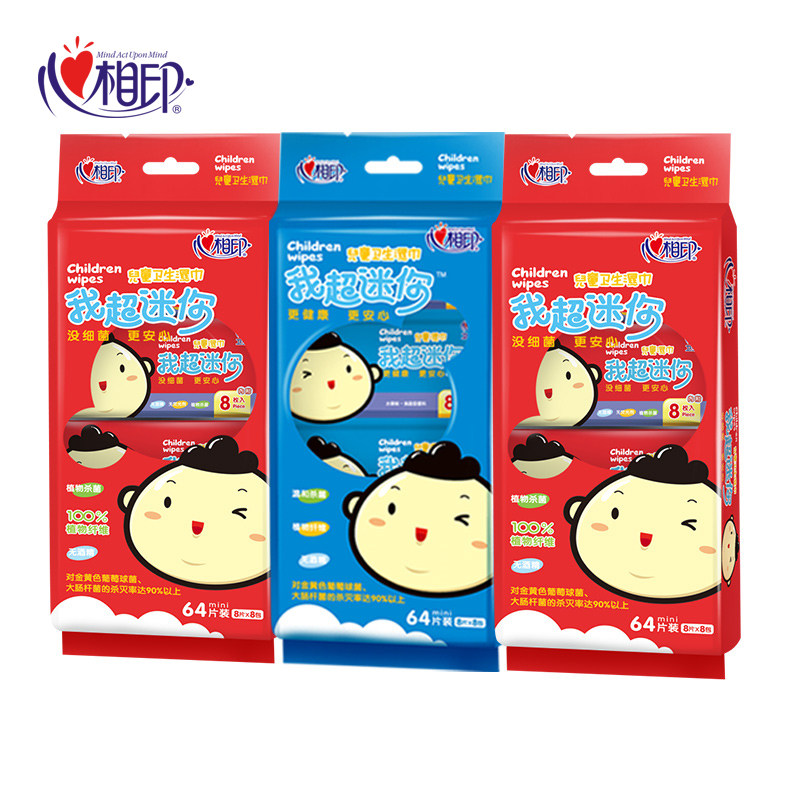 Heart phase print ultra mini portable pocket cute wet towels baby wet paper towel baby 3 bags 24 bag