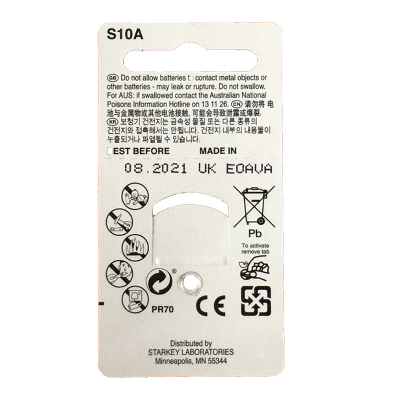 Original Imported Mercury-free Nasdaq Starkey Hearing Aid Battery S10A PR70 Whole Box 40 Grain