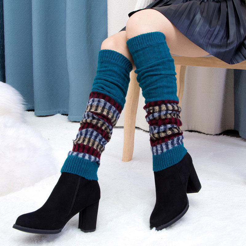 Autumn Winter Warm Lengthening Socks Woman Knitted leg jacket over kneecap foot escape boot Wool Wire Thickened Collage foam Sox cover