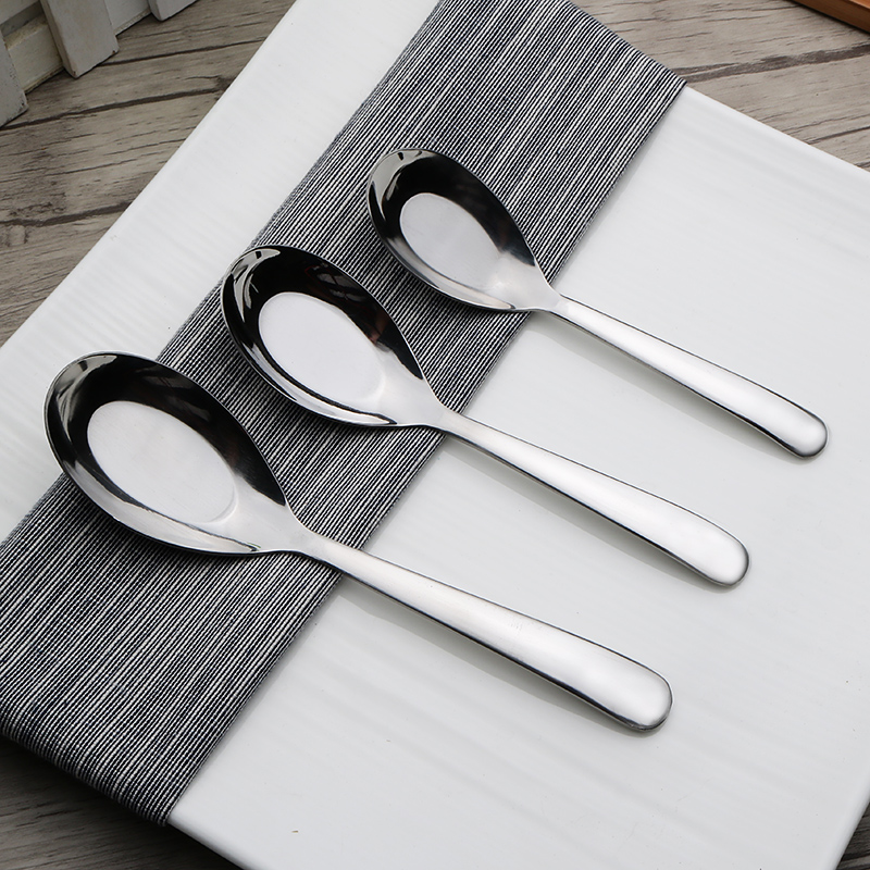 Stainless steel flat bottom spoon deepened with tablespoon long handle spoon Child spoon Chinese rice spoon Tablespoon Oval Tablespoon