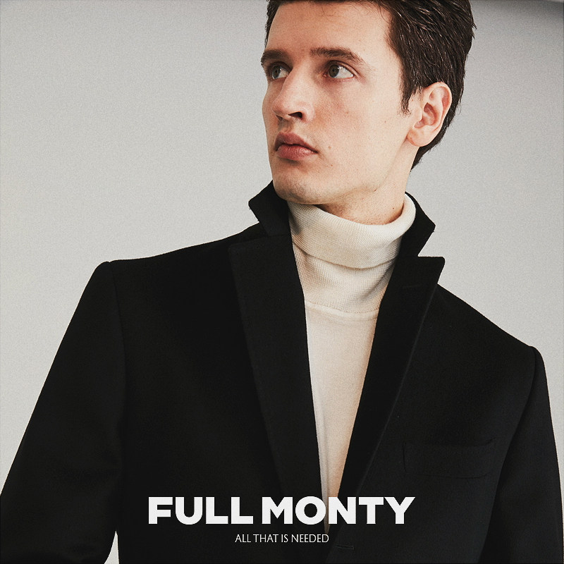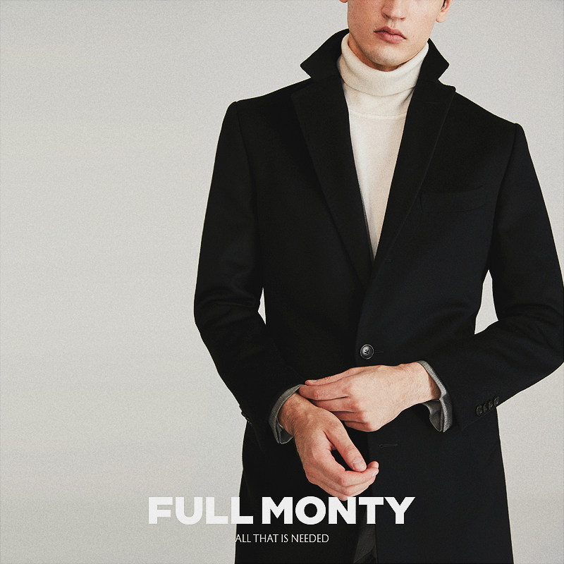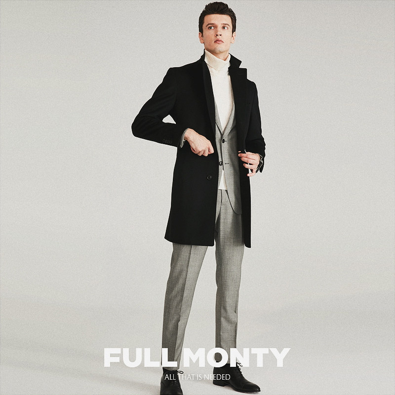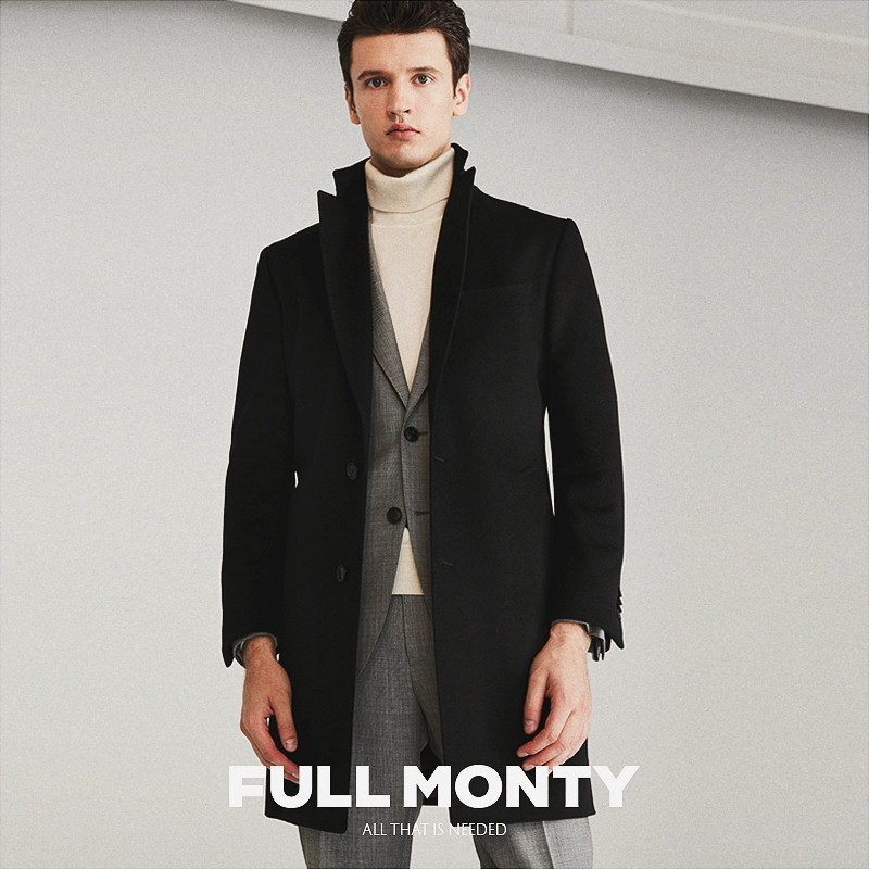 FULL MONTY men's business slim sheep wool coat flat barge collar single-breasted medium long warm coat