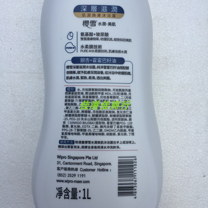 Yingxue Hong Kong version moisturizing SHOWER GEL GINKGO DEEP moisturizing SHOWER GEL 1000ML Liuxiang BATH