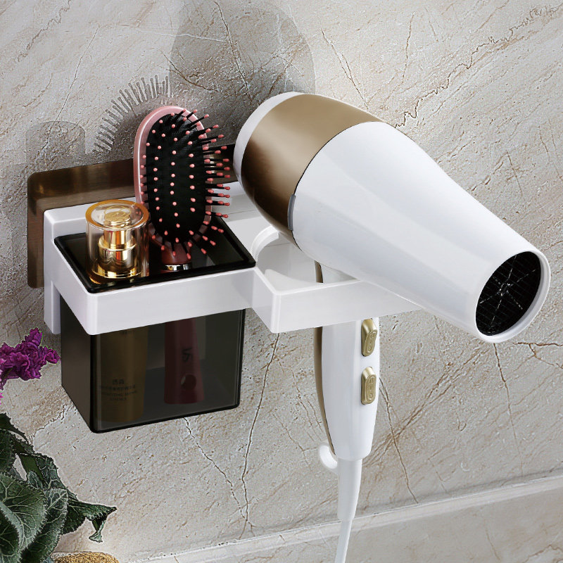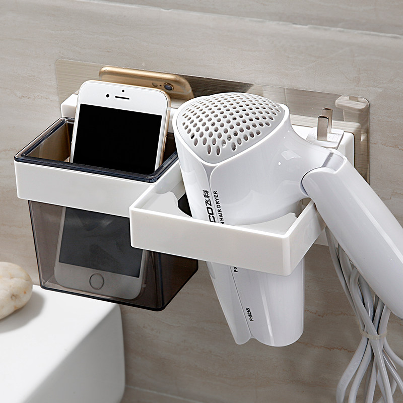 Hair dryer rack Free hole powder room household shelf Bathroom wall-mounted toilet Hair dryer rack storage shelf