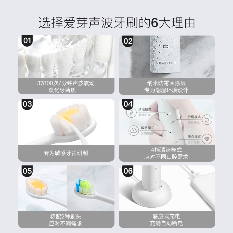 OraCleen love Bud small white soft hair electric toothbrush adult household men and women ultrasonic brush head Children's toothbrush