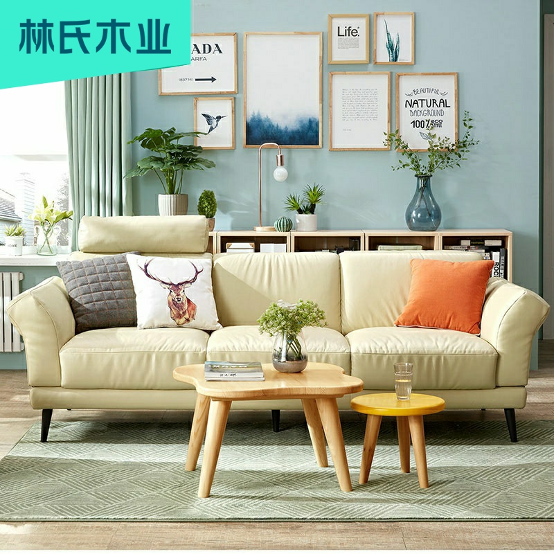 Lin's wood industry Nordic furniture headroom Cow Leather Sofa Living-room Trio Small Family of Light Extravagant Leather Sofa RAM1K
