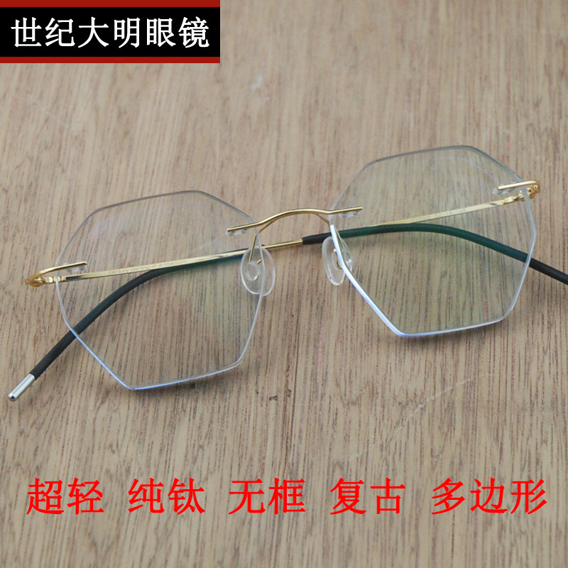 Ultra Light Pure Titanium Without Frame Retro Polygon Nearsightedness Glasses Female Personality Irregular Myopia glasses Men's Myopia
