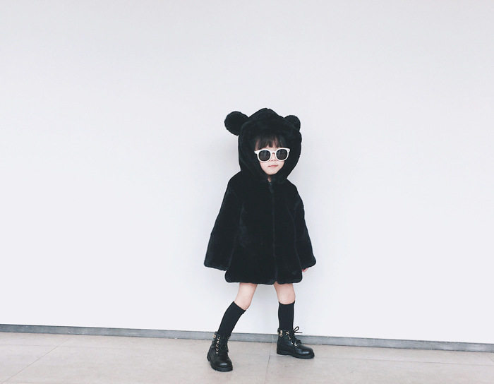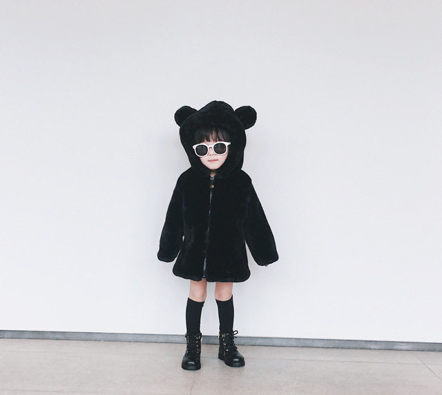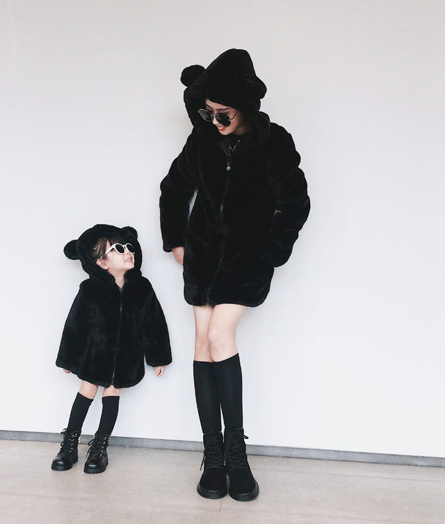 In winter 2019, new parent - child thickening cotton mother and daughter adorable bear fake fur coat coat