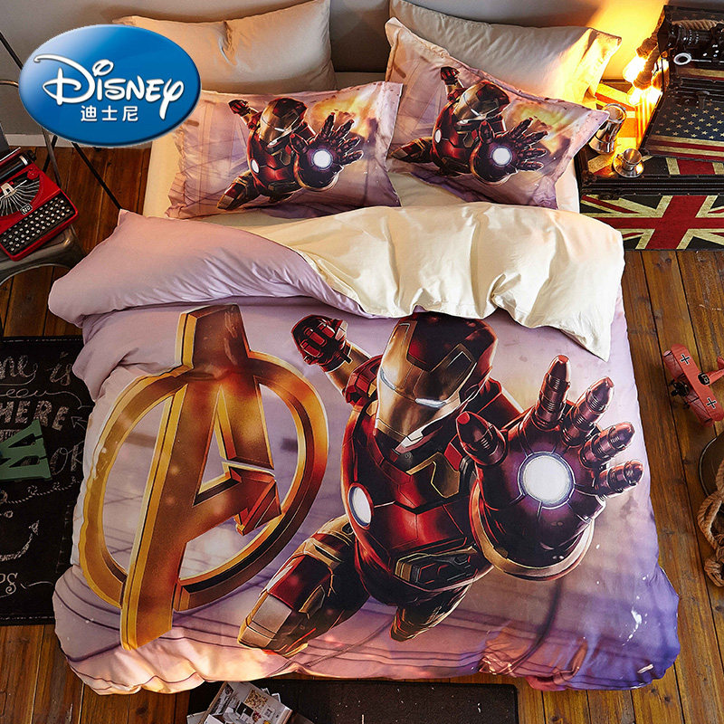 Genuine American Captain Four Pieces Of Pure Cotton Steelman Children Cartoon Linen Quilt Cover All-cotton Boy Cute Bed