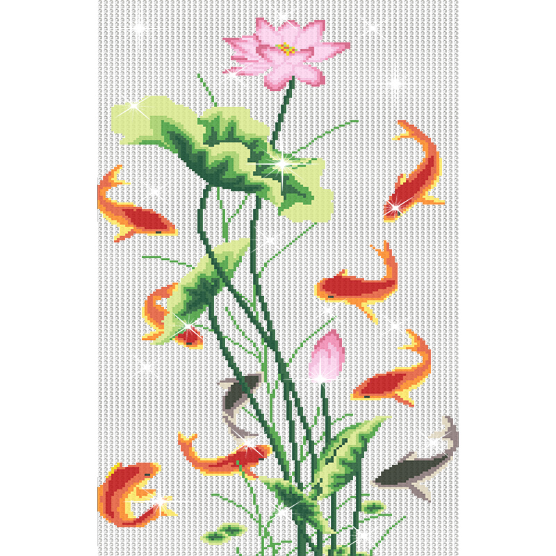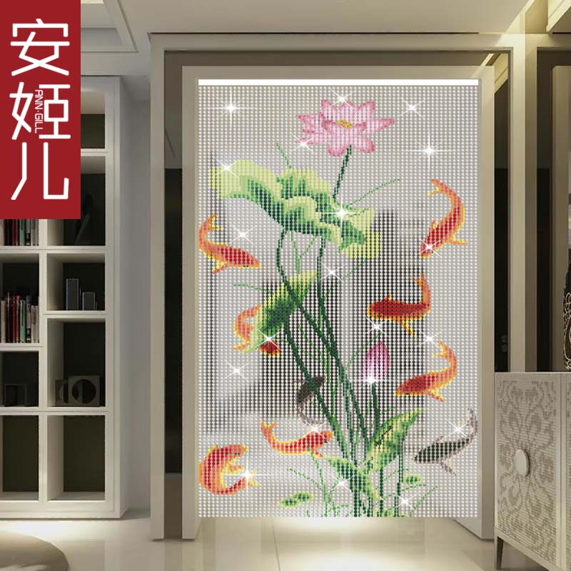 Anj Pediment Crystal Painting Curtain Nine Fish Lotus Lotus Flower Crystal Door Curtain Handmade String Bead Living Room Cubicle Modern Chinese Pearl Curtain