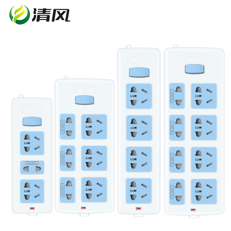 Qingfeng wireless socket row plug extension line without wire wiring board 5 6 8 10-position plug multi-function jack extension line self-wiring plug row drag board New national standard high-power with switch Home