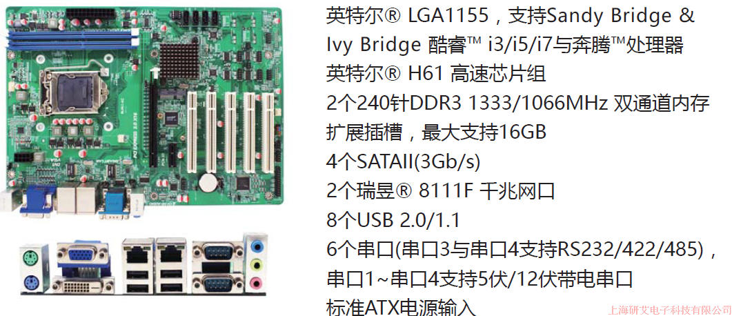 H61 chip industrial large motherboard motherboard 5PCI 2PCIE 6 serial ports dual network ports support XP WIN7