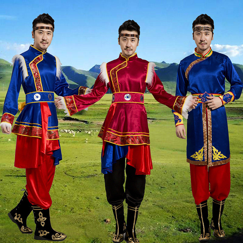 Mongolian dance costumes male Mongolian costumes adult stage costumes Xinjiang Uyghur Bai Tibetan national costumes
