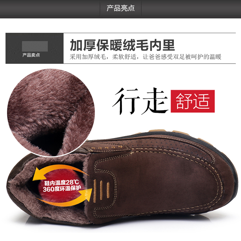 Winter Old Beijing Cloth Shoes Men's Cotton Shoes Non-slip Bull Fascia Bottom Thickened Add Suede Soft Bottom Warm Mid-Aged Dad Shoes