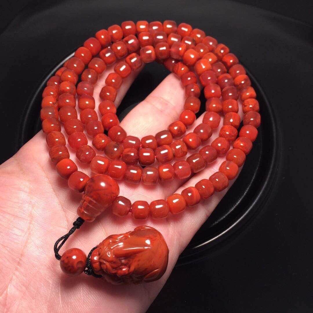 Sichuan Liangshannan red Agate flame pattern Pixiu pendant 108 Buddha beads Hand chain hand string Beast Guanyin Buddha