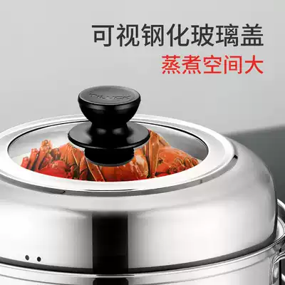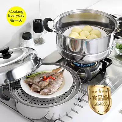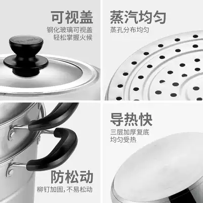 Stainless steel steamer Three-layer multi-3-layer thickened steamed bun steamer 1 two 2-layer induction cooker household gas stove with cover bottom