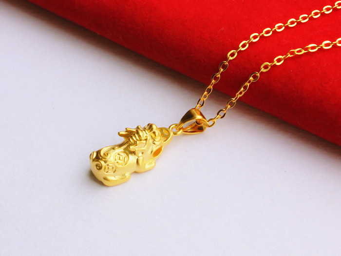 Gold-plated leather pendant Pixiu men's and women's unicorn beast money Pichu large, medium and small all-match jewelry necklace