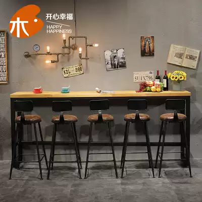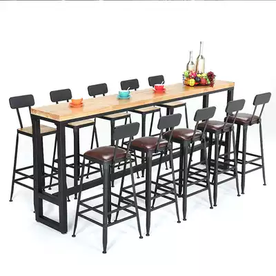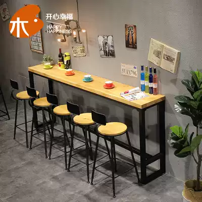 Solid wood household bar table Cafe table Bar table and chair Wrought iron modern simple high-legged wall long table