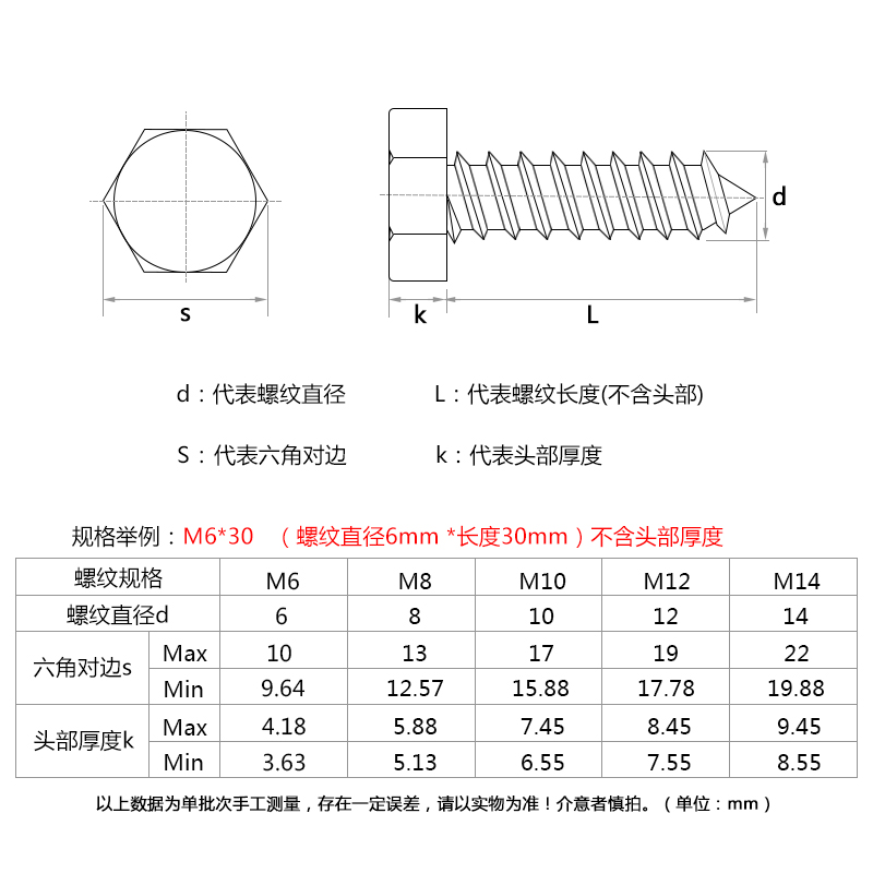 304 stainless steel full tooth external hexagonal self-tapping screw wood screw M10*x30 35 40 50 55 60-100