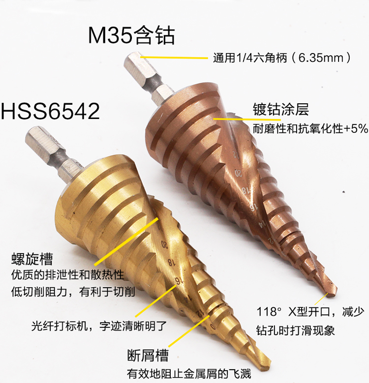 Triangle handle step drill Pagoda drill step drill opener steel plate iron plate aluminum plate drilling 4-32