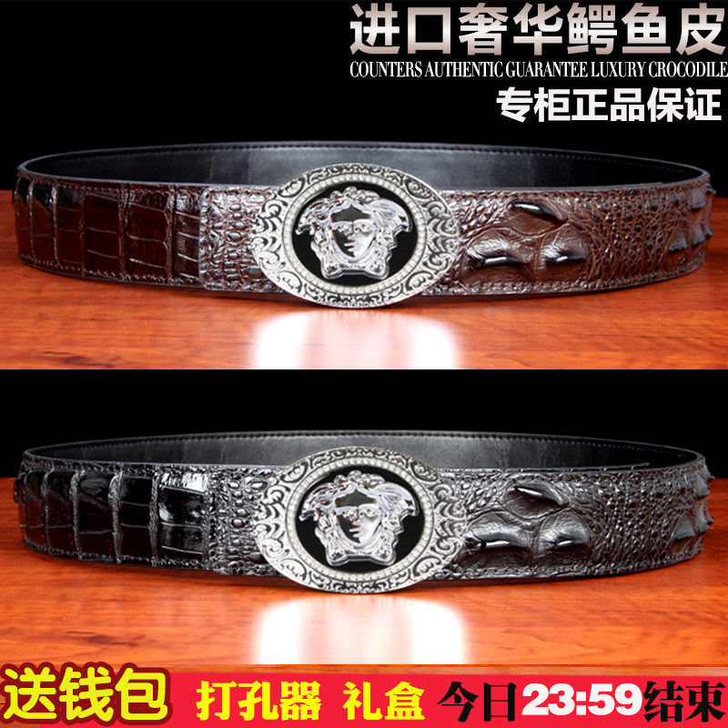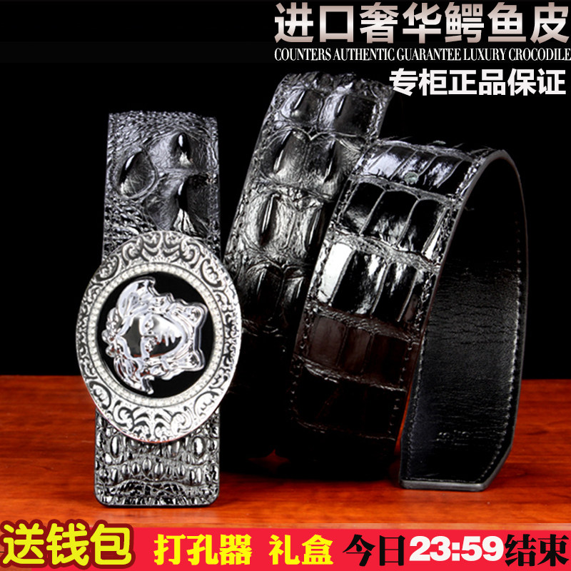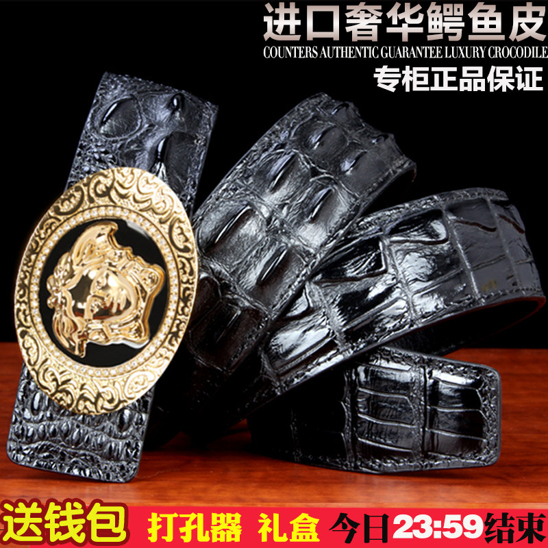 Thai crocodile leather male belt with high-end men's belt male leather skin belt smooth buckle leather crocodile leather pants belt