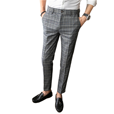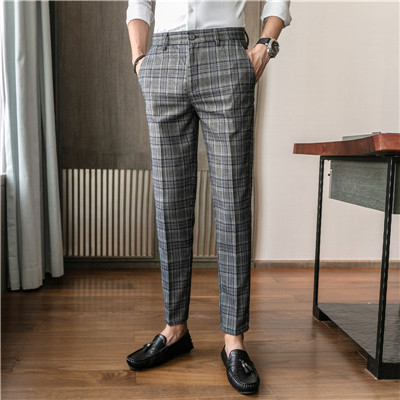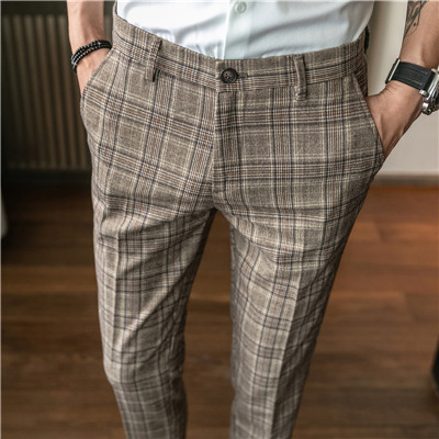Black and gray plaid trousers men's Korean version of the slim all-match pants trend youth hip-hop casual pants small feet autumn