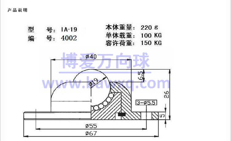 Integral stainless steel 304 steel ball theory IA-19R universal ball WS-02 bull's eye ball bearing three-hole flat bottom