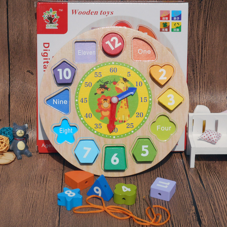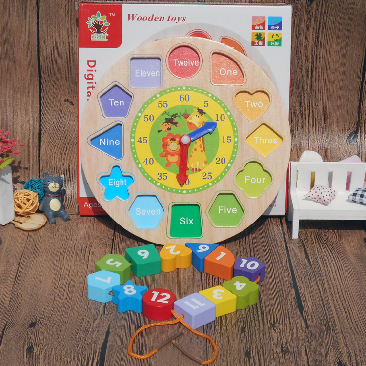 1-36-year-old kindergarten Children's students Wooden Quality Puzzle Force Early Education Toys Digital String Beads Shape Clock Building Blocks