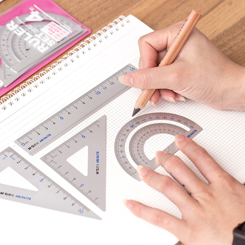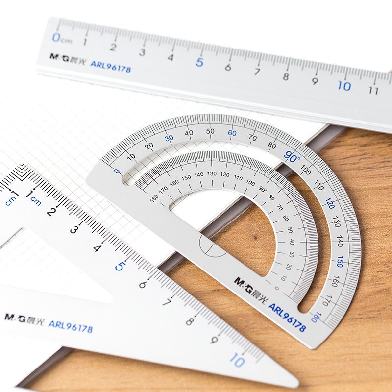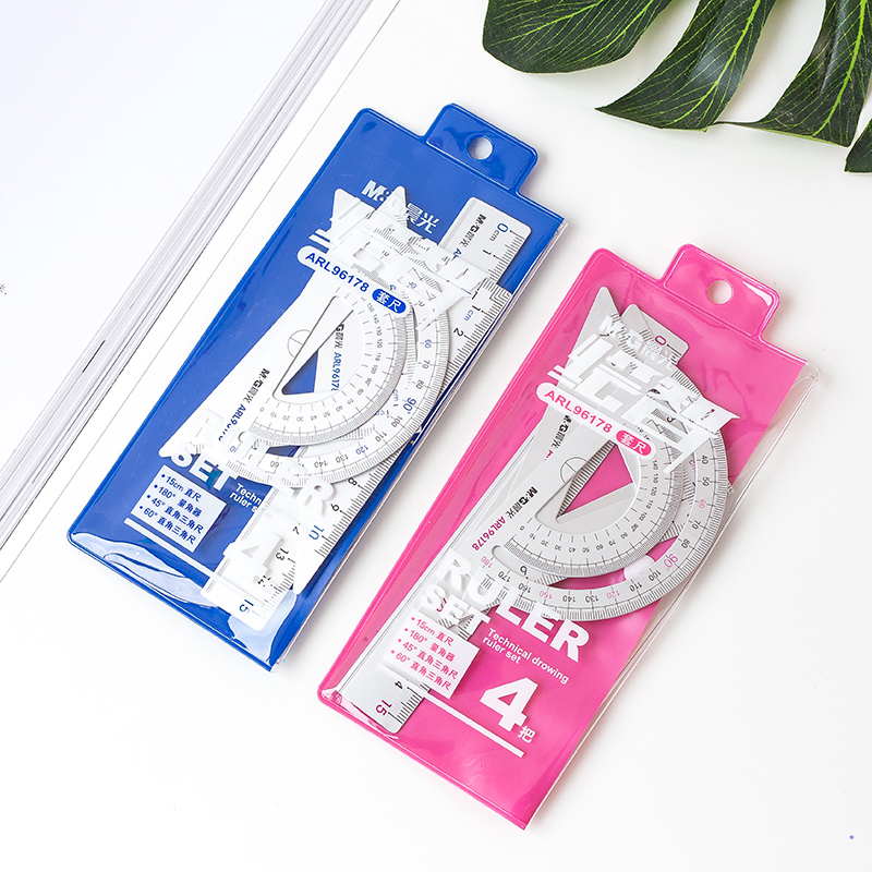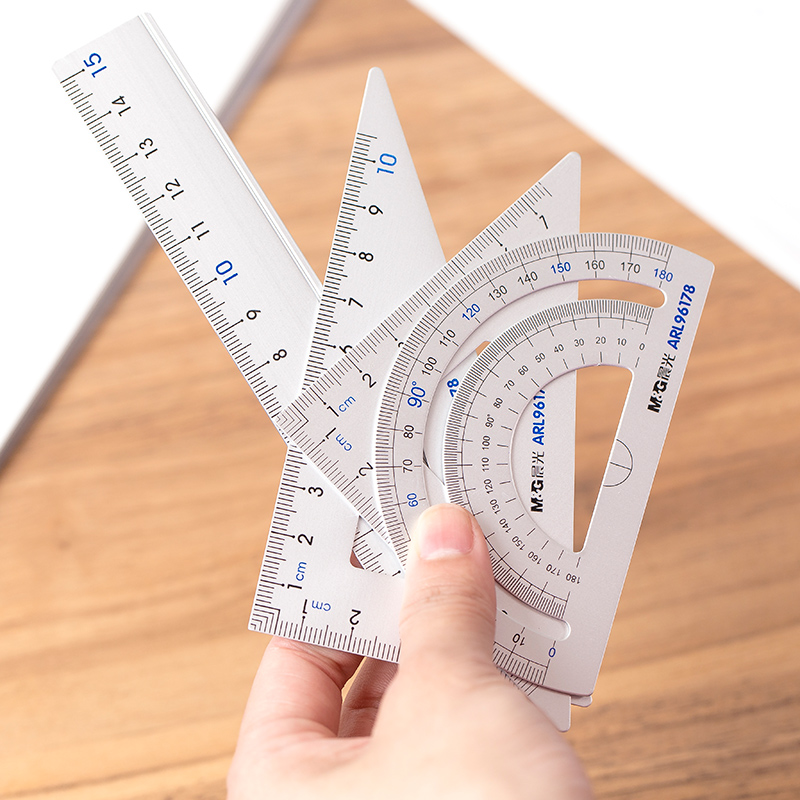Chenguang aluminum alloy set ruler drawing four-piece ruler for primary and secondary school students with triangle protractor exam ruler set Korean simple and cute children's multi-functional painting 4-piece stationery