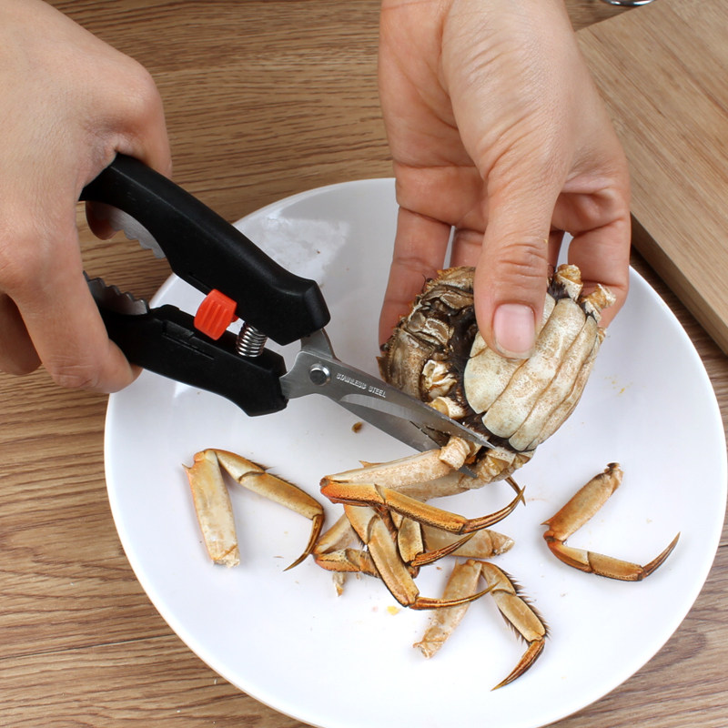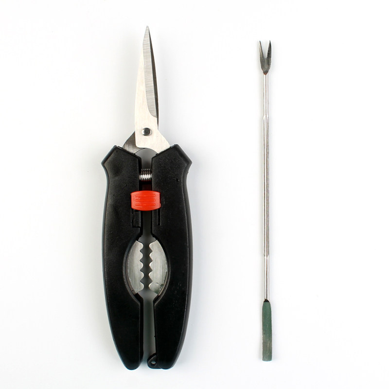 Stainless steel crab eating tools Crab lobster scissors Kitchen seafood spring scissors shrimp peeler Crab pliers scissors clip send crab needle