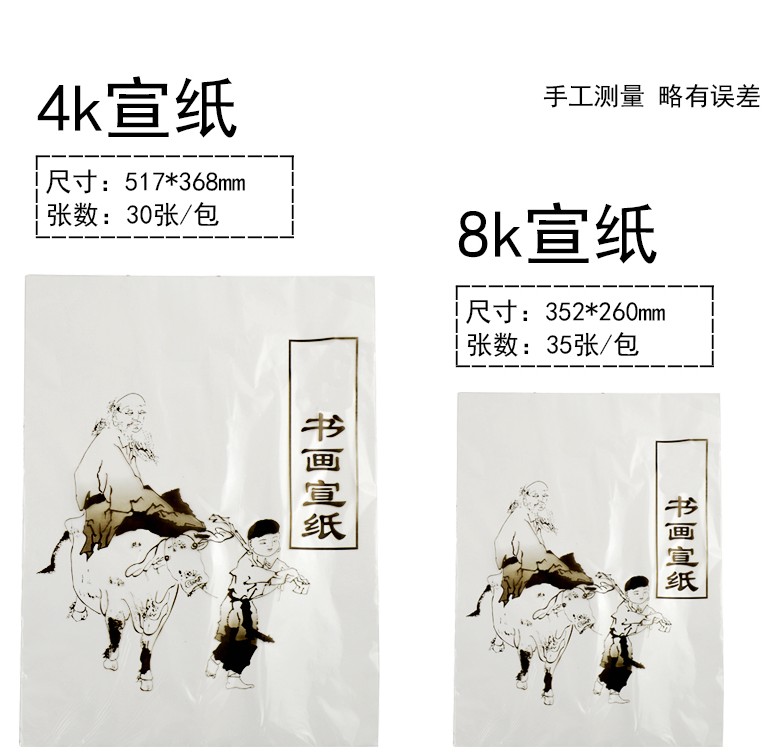 Beginners Xuan paper raw Xuan paper 8 open 8K Xuan paper 4 open 4K brush calligraphy Exercise a pack of 30 sheets
