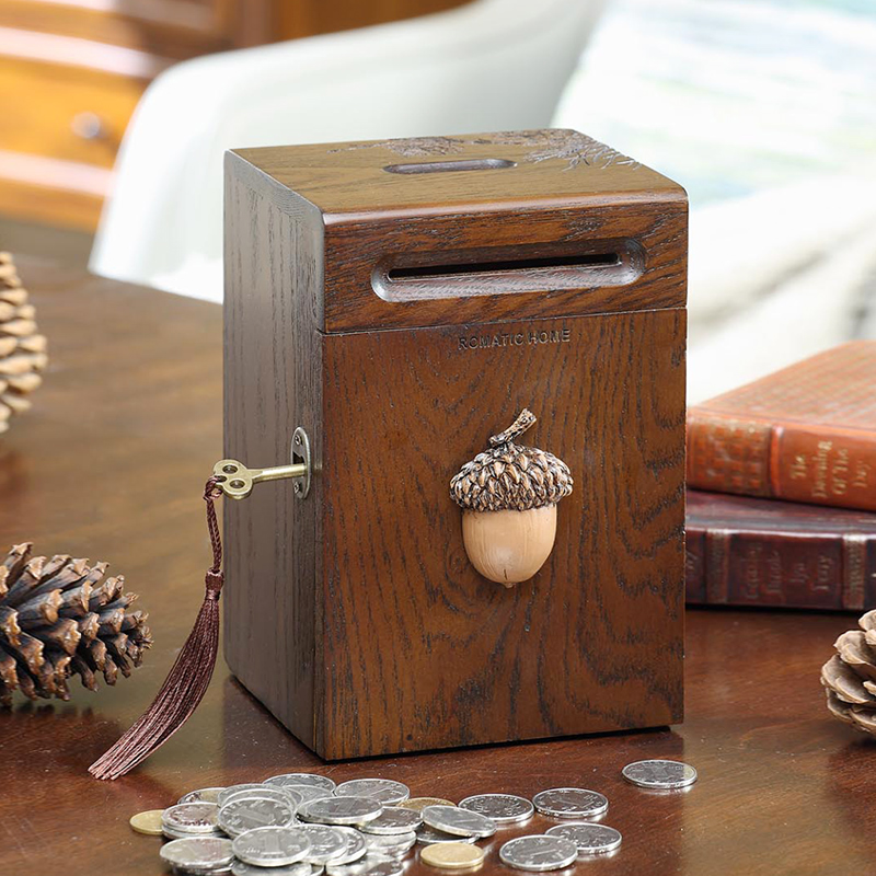 Creative Gift American Solid Wood Tabletop Coin Deposit Money Barrel Bill Deposit Money Jar With Lock Big to contain the box