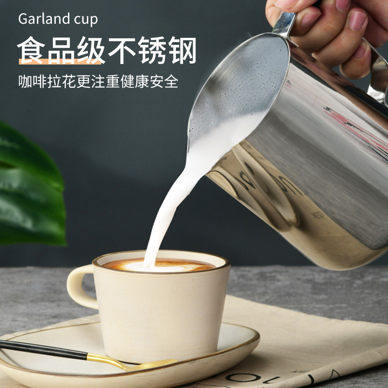 Stainless Steel Raffles Cups Laflower Milk Vat Coffee Milk Bubble Slant Mouth Long Mouth Tip Flower Style Coffee Cup Companion