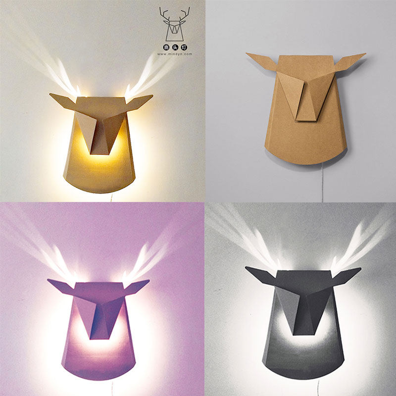 Elk Deer Head Deer Antlers Led Stairs Aisle Wall Light Creativity Handmade Homemade Living Room Bedroom Bedside Headlights Material Bag