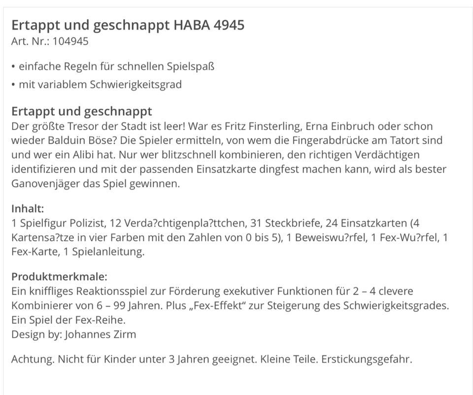 German haba4945 Yizhi toy tables game FEX brain burning system arrested suspects