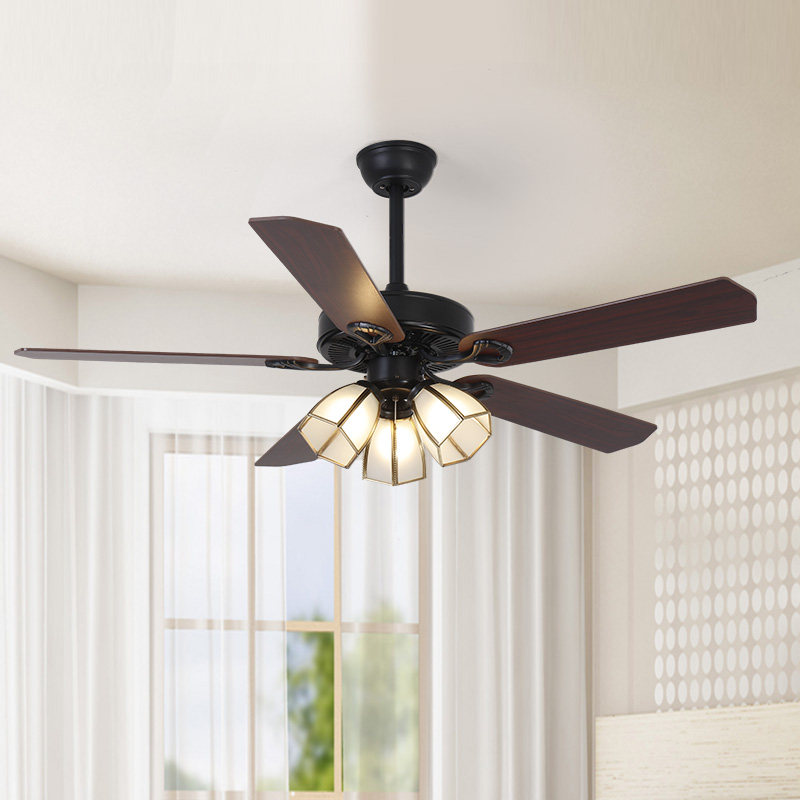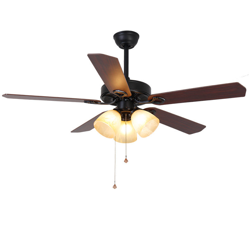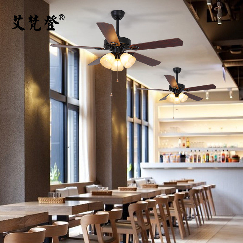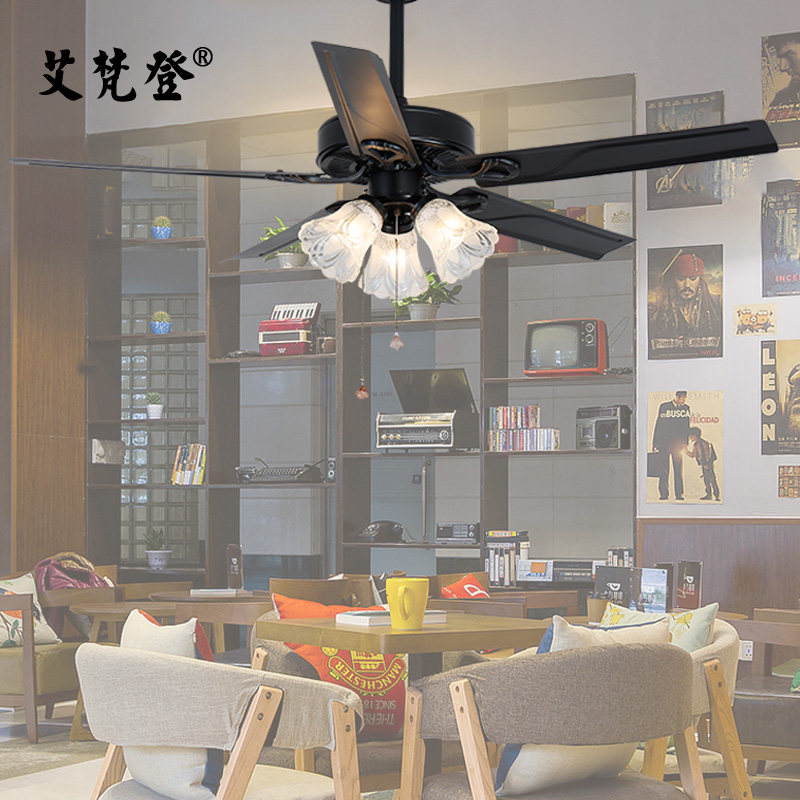 Black Ceiling LightRestaurant Simple Electric Fan Lighting American Country Virgin Living Room Industrial Iron Wood Leaves Mute Household