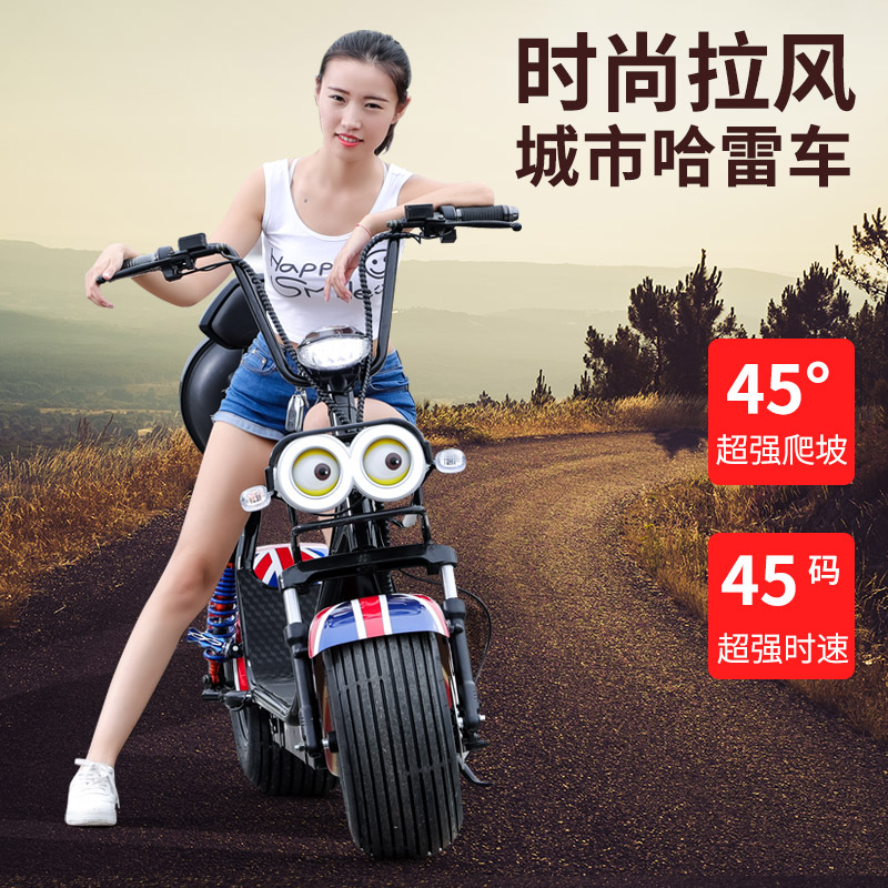 Electric scooter two-wheeled adult walking wide tire electric car mini electric men women Harley battery car
