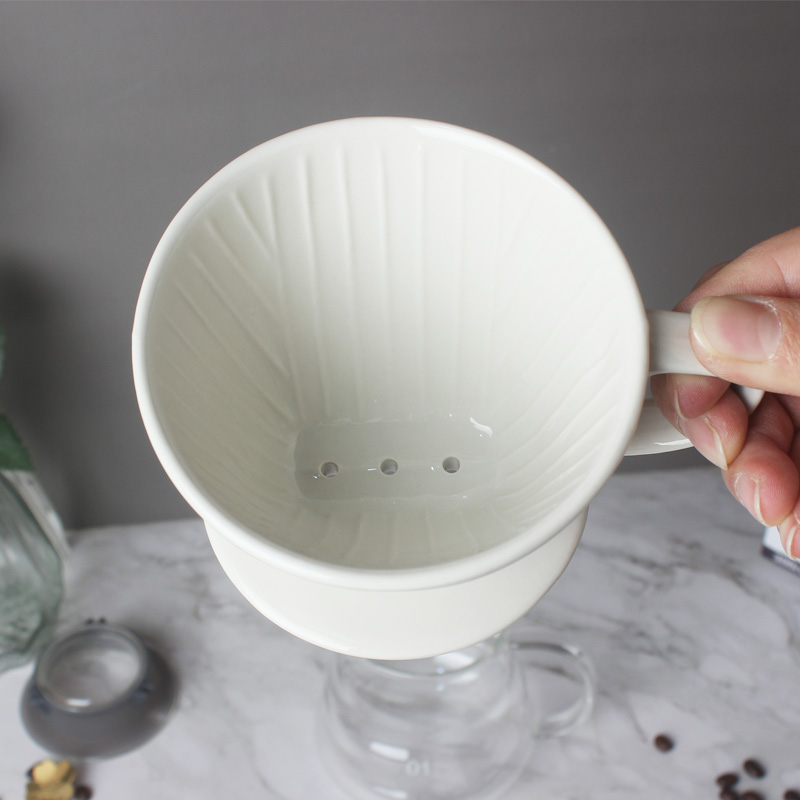Hand Punching Coffee Filter Cup Ceramic Pure White Triple Hole Hand Punch Drop Filter Type 101102 V Type Fan Type Filter Cup Drip Leak