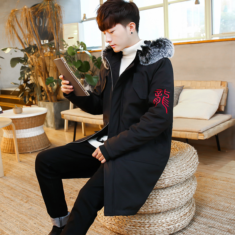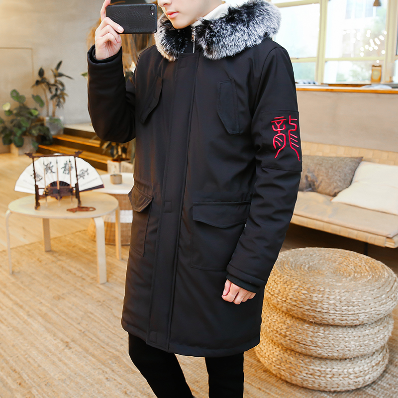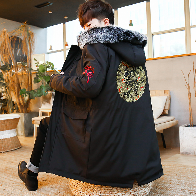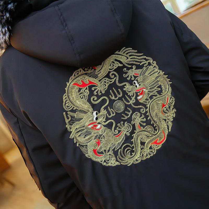 Chinese style Tang suit Chinese style Chinese wind men's clothing embroidered wool collar medium long version cotton coat jacket winter youth guese quilted jacket