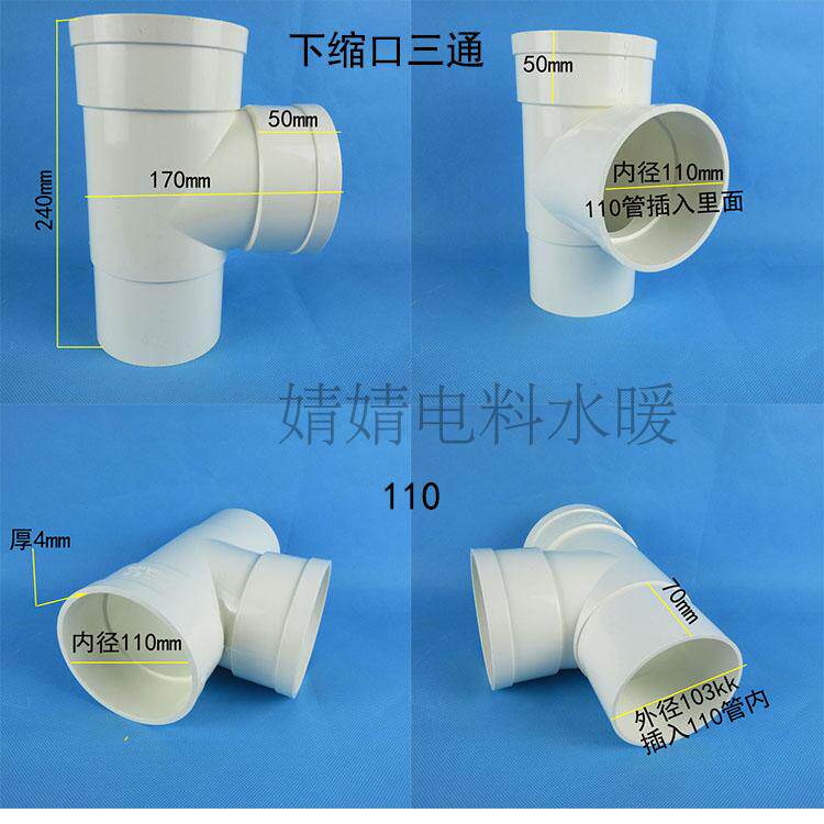 Lower Bunches opening tee PVC drainage accessories 50 75110 three-way sewer three-way connector 160 inner and outer inserts