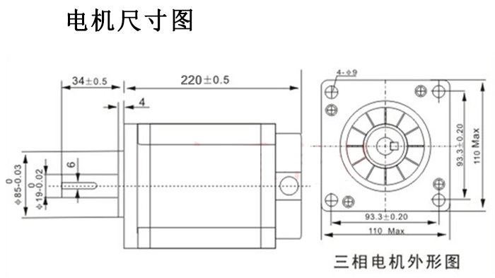 Three-phase 110 stepper motor suit 110BYG350C Long 187mm Force distance 16N m Drive 3DM2080