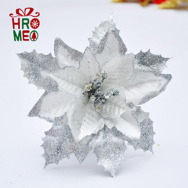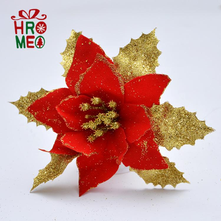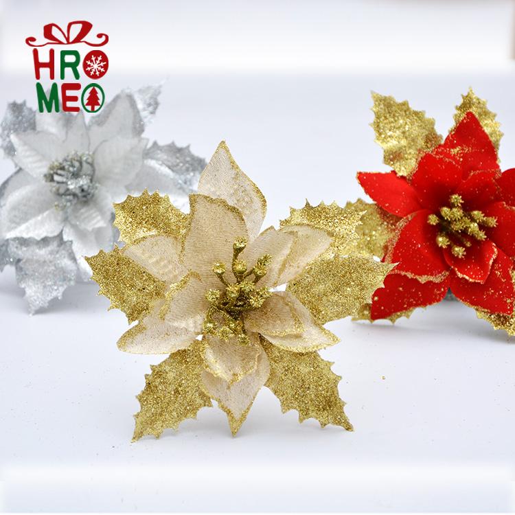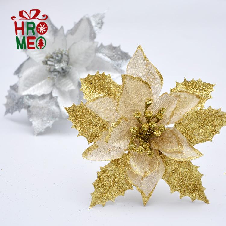 Hroemo 18cm Gold Red Silver Christmas Flowers Christmas Tree Garland Rattan decorative accessories Simulation flowers