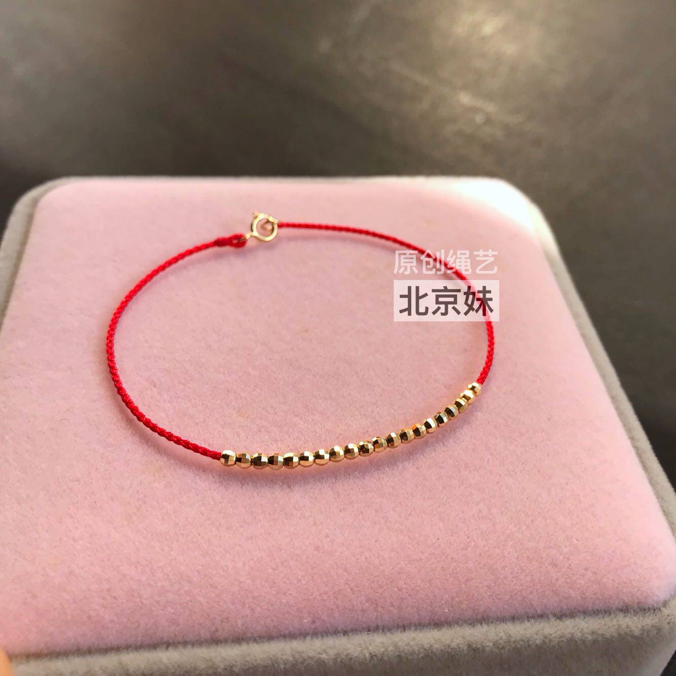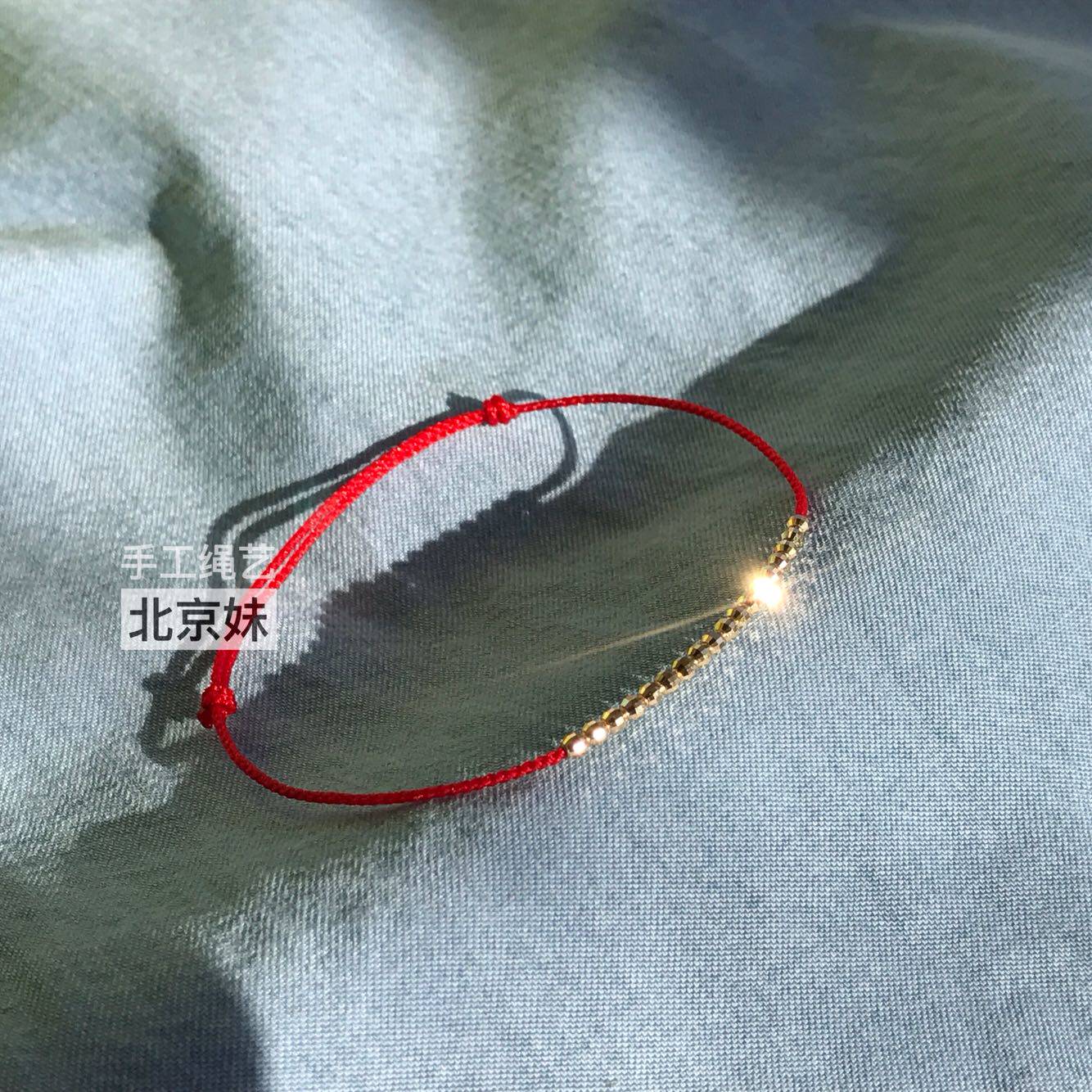 This Life Year Pure 18k Gold Golden Bean Bean Section Laser Transshipment Pearl Red Rope Handmade Female Advanced Sensation Original Design