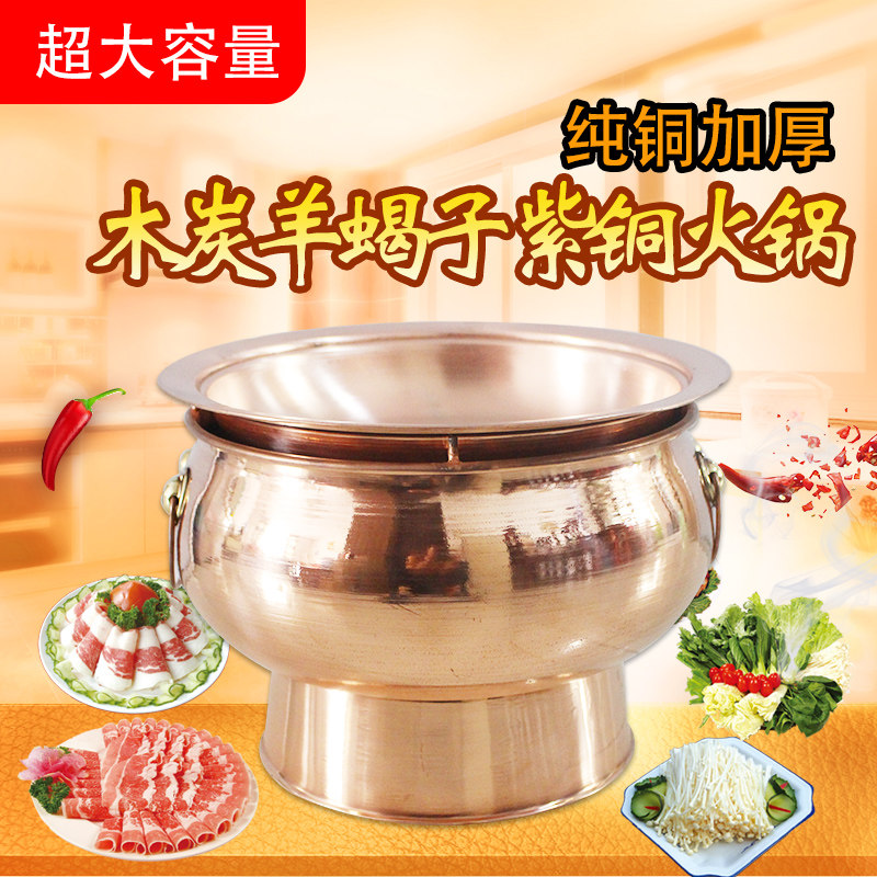 Pure copper thickened charcoal sheep scorpion copper hot pot pot charcoal copper hot pot stewed vegetable hot pot hot pot chicken copper hot pot
