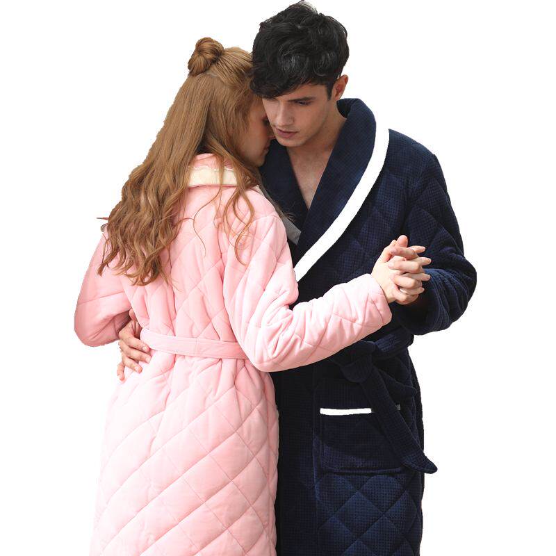 Fenten Coral Suede Sleeping Robes Women's Autumn Winter Three Layers Clip Cotton Plus Suede Thickened Couple Men's Bathrobe Pyjamas