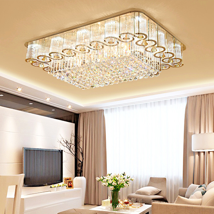 LED ceiling light luxury crystal headlight rectangular living room light modern simple atmosphere dining room bedroom lamps