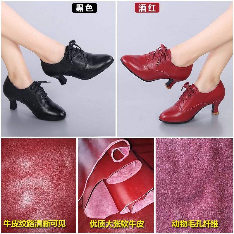 Black Latin dance shoes women 2021 new adult women high-heeled leather leather soft bottom square dance shoes