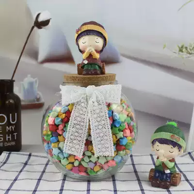 Large transparent glass wishing bottle double bottom flower drum Lucky Star bottle with Cork birthday Chinese Valentine's Day Valentine's Day gift