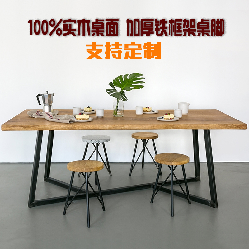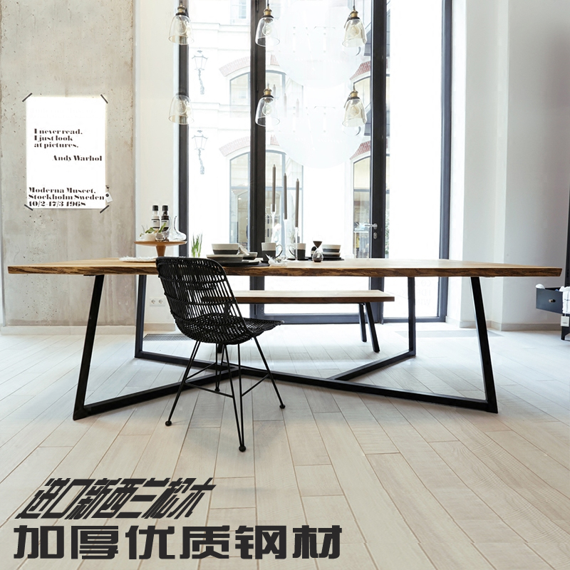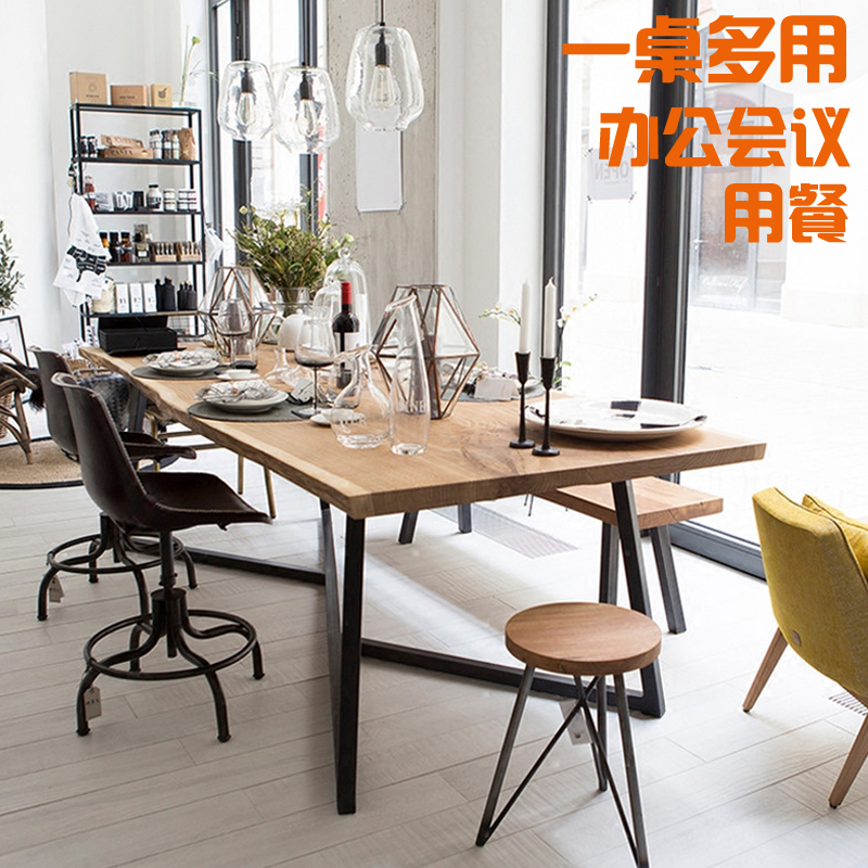 Nordic solid wood desk loft simple computer desk workbench large iron negotiation table long strip conference table