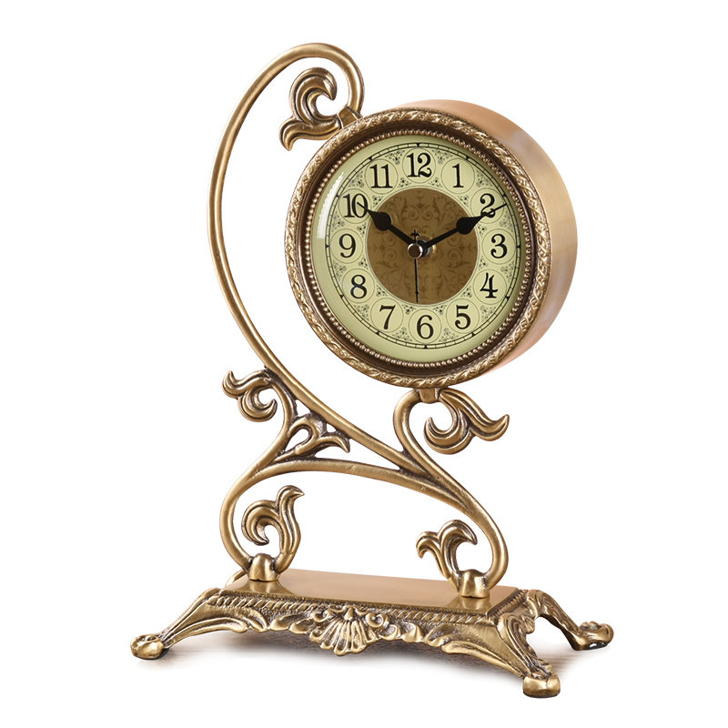TQJ European-style desk clock pure copper bedside silent living room sitting clock clock desk clock bedroom clock quartz clock